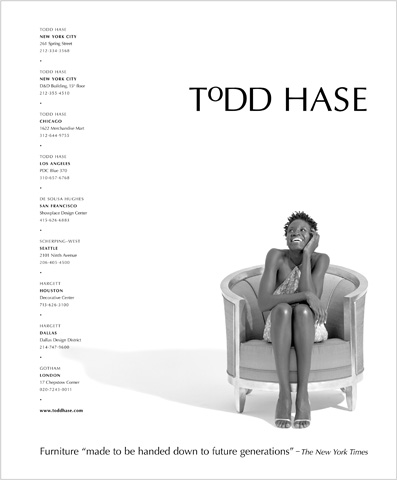 This series of ads for a high-end furniture designer was designed in black and white for placement in full-color national design magazines. Amongst all the color and visual activity of the other pages, these ads stood out like a moment of silence.